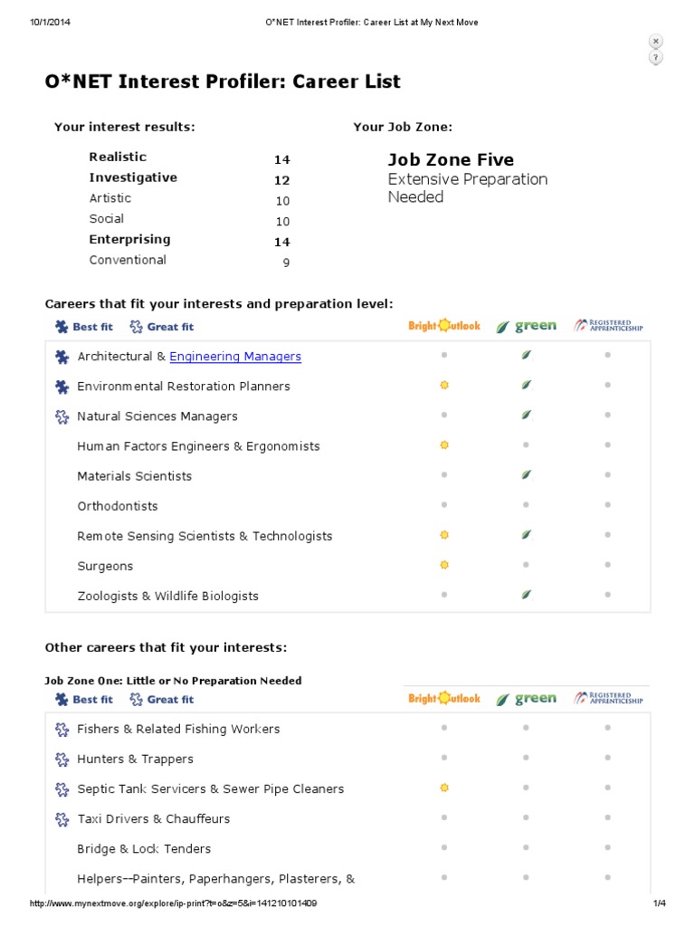 The o*net interest profiler helps you decide what kinds of careers you might want to explore. The occupational information network (o*net) is a free online database that contains hundreds of occupational definitions to help students, job seekers, businesses and workforce development professionals to understand today's world of work in the united states. The o*net interest profiler can help you find out what your interests are and how they relate to the world of work. The test contains 21 items that had to be placed in order of. Now that you've learned about holland's interest type system and taken the o*net interest profiler, it's time to interpret your profiler results.