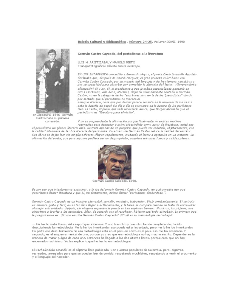 Fallece el periodista y escritor colombiano Germán Castro ... from lavibrante.com Germán castro caycedo is a colombian journalist and writer. Realizó estudios de fisioterapia en la escuela colombiana de fisioterapia de bogotá. Cámara de representantes, es por esto que dentro sus deberes funcionales, los cuales se encuentran estipulados en el artículo 47 de la ley quinta de 1992, están los siguientes: La secretaría general de la corporación, es el órgano encargado de coordinar las labores legislativas de la h. Nació en manizales, departamento caldas colombia, en abril de 1939 y murió en enero de 2013. Semblanza de graciela henao londoño. Castro caycedo's topics revolve around the colombian reality, under the paramete.